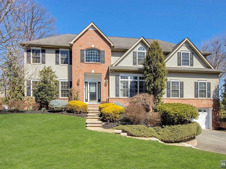 Immaculate Center Hall Colonial with beautiful open floor plan on Cul de sac in the Heart of Park Ridge. Welcoming and bright two-story entrance. Spacious formal living room with upgraded Brazilian cherrywood floor. Banquet-sized dining room-great for entertaining. Updated eat-in kitchen with center island, granite countertops, maple cabinets and sliding doors to backyard. Large & open great room including brick fireplace and French doors to music room/office with Brazilian cherrywood floors. Large bedroom, laundry room and half bath completes first level. 2ND level offers expansive primary suite including tray ceiling, dual walk-in closets and large primary bath. Three additional generously-sized bedrooms and full bath completes the second level. Lush, professionally landscaped property with large deck, perfect for entertaining. 2-car garage. 4312 SQ ft. Upgrades include new water heater, AC and furnace. Convenient to schools, parks, center of town and bus and train!