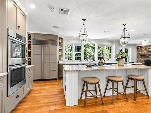 Gracious Colonial in desirable cul de sac neighborhood. This beautiful 4 bed, 4 bath home has an amazing renovated cook's kitchen with large center island, walk in pantry, stainless appliances, sub zero fridge that opens into the cozy den with gas fireplace. The open floor plan works well for entertaining with an elegant living room, spacious dining room with fireplace, airy sun room with lots of windows, grand family room with cathedral ceilings, window seat & stone fireplace. Renovated 1st flr full bath is easily accessible to the fenced in back yard with doors out to deck, hot tub, beautifully landscaped yard & inground saltwater pool. Renovated primary bedroom with a fireplace, walk in closet, spa like full bath, separate office space & loft style library with a fireplace overlooking the family room. 2nd floor includes 3 Amazing additional oversized bedrooms & renovated bathroom. Fun finished lower level with diner style bar area, exercise room, playroom, game room & storage.