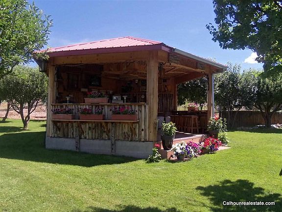 This remarkable home needs to be seen to appreciate it's many features, including handcrafted woodwork, stunning rock fireplace, radiant heat, new septic system, water rights, large laundry/craft room, oversized garage with commercial doors, a wraparound porch/sitting area, covered with lush ivy. All 5 bedrooms and 2 baths are neat as a pin and clean as can be. Outside, you'll find a carefully manicured yard with grass, fruit trees, a horseshoe pit, fenced pasture and an awesome gazebo. Simply gorgeous.