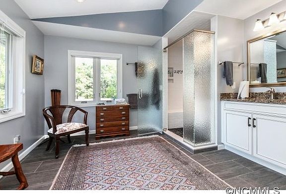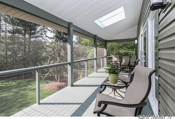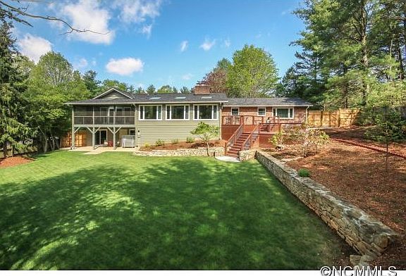 Expansive and open contemporary ranch home with spacious yard in convenient and desirable Ballantree. The split plan home has a large and sunny open living space with 3 generous bedrooms and 2 baths on one side and a spacious vaulted master suite with private screened balcony on the other. The large kitchen has stainless appliances and quartz countertops. Additionally, there is a large and versatile basement with a fireplace, bedroom, bathroom, storage, utility room and a rare safe room. Basement could easily be made into a second living quarters or inlaw suite. The inside flows out to the park like, private and fenced yard with decks and porches. For those who need a lot of room to breathe or need space for a multigenerational family this one is for you.