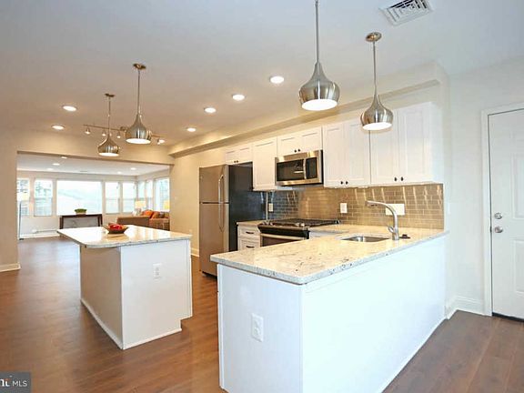 Truly one of a kind! Come home to a large, sunlight filled apartment. Two private entrances. 3 large bedrooms, 2 full baths with double vanities and one half bath. Plenty of closet space. Large, updated kitchen with island. Perfect for families or roommates.