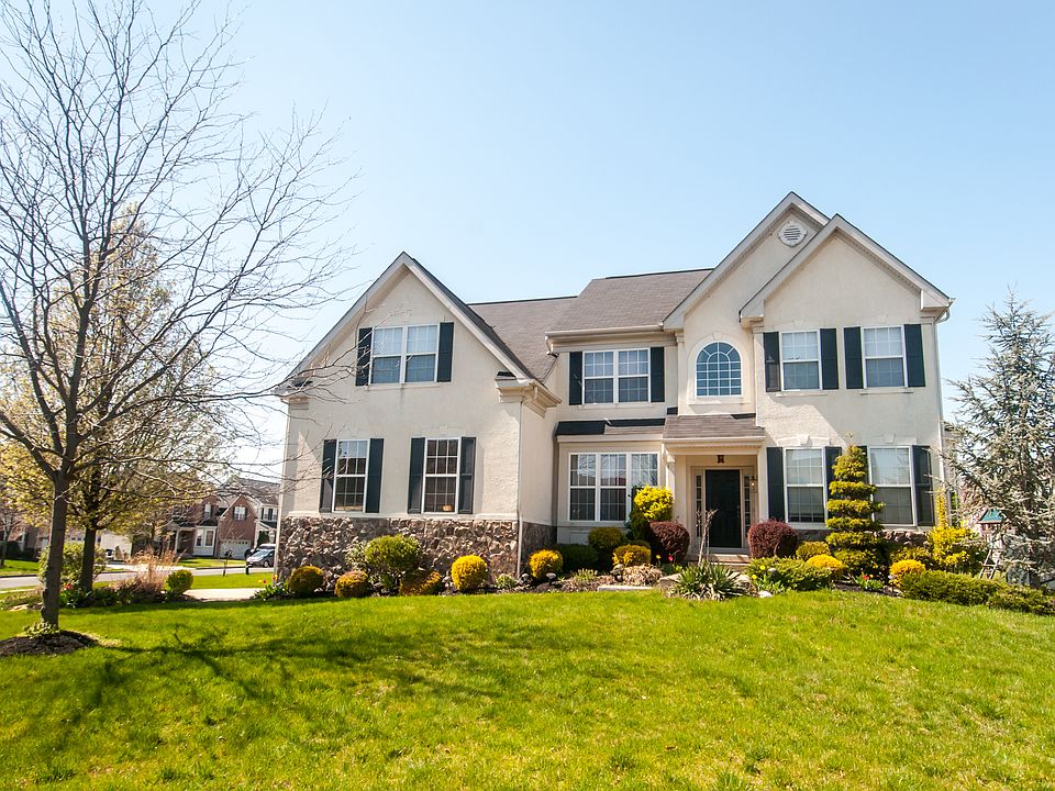 Beautiful Stucco front 3,540 square feet Solebury Grand model in the desirable community of Meadow Run. This house has lot to offer with an open floor plan & two-story vaulted cathedral ceiling , picture-frame-molding accents and hardwood flooring. Formal living room has a bay window and is sure to be the place to entertain your guests. Family room is attached to a beautiful sunroom for your family morning time. Family room has a gas fireplace and over-sized windows. Large gourmet kitchen comes with double oven, stainless steel appliances, granite counter top, over-sized double island & walk-in pantry. Main floor also has a powder room and your home office. Second floor has an impressive master