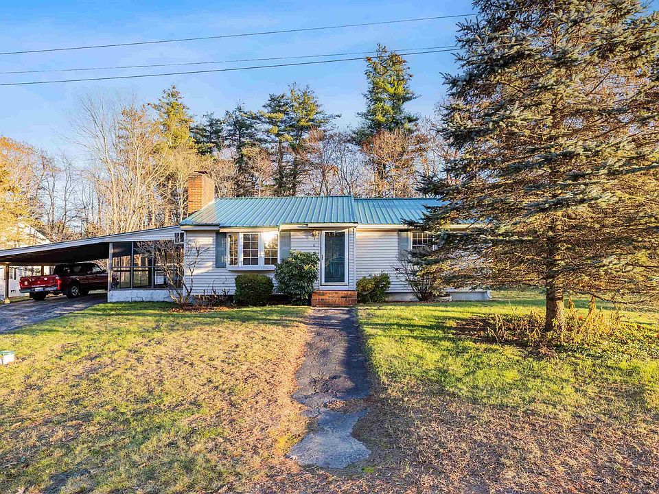 One level living home in a quiet country setting on a quiet road near a cul-de-sac. Two bedrooms and one full bath. There is an extra large room in basement used as a den or entertainment room with a bar. Lovely porch attached to the home for enjoying the mornings looking out on your half acre property that is level and spacious! Wonderful for pets and also has a two car port attached to the home. A shed is on the property and lovely pine trees decorate the edge of the property. Nearby is a local golf course and access to major highway of Route 125 within one minute. Route 101 is within ten minutes. Take a drive to the ocean only 20 minutes away. Come and see country living in the lovely town of East Kingston, NH. There is also conservation land very near to the property!!! Open house Saturday December 2, 10 am to 1 pm.