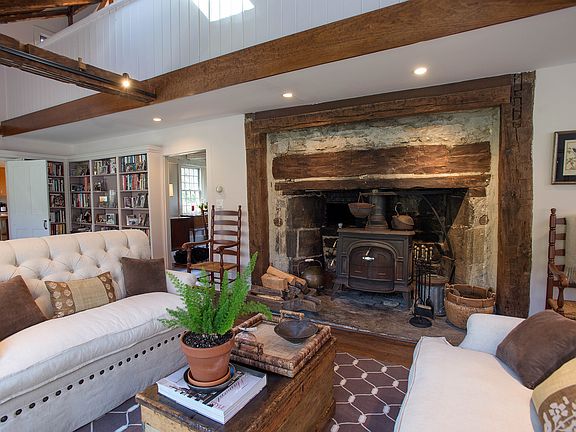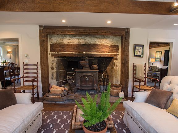 This stunning 1720 Saltbox on 2.23 pastoral acres offers the perfect combination of period warmth, character and charm with updated amenities for modern day living. Meticulously renovated, this excellent example of an 18th century center chimney home retains its original handhewn beams, handmade doors, wide plank floorboards, and 3 fireplaces (including one with the original beehive oven). This eight room, three bedroom, 2.5 bath home has spacious rooms, central air, a finished third floor with half bath, an expansive stone terrace overlooking the private back yard with its majestic old growth trees and mature gardens, and a detached two car garage. Convenient central Redding location, close to shops, schools and transportation. Just 56 miles from mid-Manhattan in the town the New York Times called "An Upscale Town with Up-Country Style".