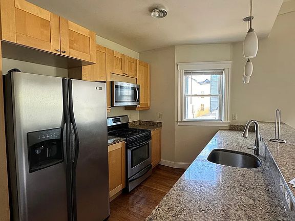 6 Giles park Beautiful Open Concept Granite Kitchen opens up into HUGE Living room. Large Granite Bar. Hardwood floors throughout. High ceilings and huge rooms. 2 full bathrooms and extra large master bed with private deck. Laundry in unit. Quiet dead end street with no permit required to park. Very nice gut renovation. Multi-Family on the third Floor. Approx 1000 Square Feet, In the Union Square Area of Somerville, 20 minutes to T Pictures are of a model unit in the building (**Reference #134845)