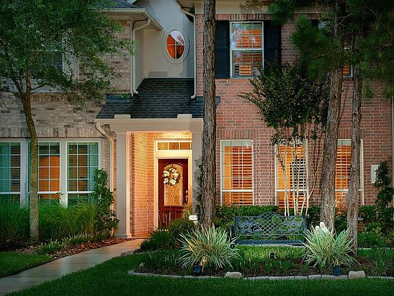 Lovely townhome on a manicured lot in Alden Bridge! Hardwood and tile floors, Plantation shutters, crown moulding, neutral paint palette, and a nice, open concept throughout the home. Island kitchen with breakfast bar, granite counters, built-in planning desk and stainless steel appliances opens to sunny breakfast room; elegant formal dining with chair rail opens to den with gas log fireplace; guest bedroom down; two bedrooms and master retreat up with sitting area; utility room off master; washer/dryer/fridge included; two car attached garage; easy maintenance fenced yard with wood deck means you can lock up and go!