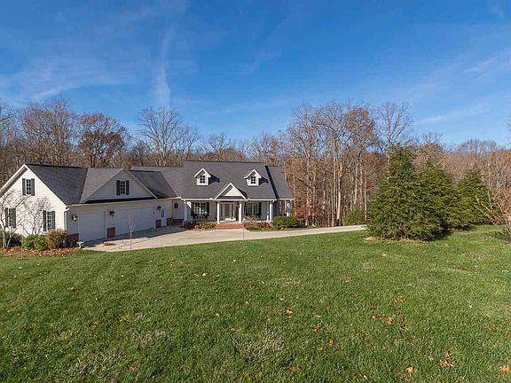 Exceptional colonial home located on the North side of Lawrence County. The landscape is all perennials for easy maintenance and the home is almost nestled into the woods. A dream come true for nature lovers. Walk down the trail to the bubbling creek on the west side property! If that is not enough, the Three-season sun room is a wonderful place to enjoy a quiet evening watching the sun disappear. There are also multiple covered porches. Inside, the great room and kitchen are for ready for entertaining anytime of the day. For the music lovers, you will particularly enjoy the acoustical balance of the traditional Cathedral ceiling. The home features a gourmet kitchen with granite counters and dark cherry cabinetry. There are 5 bedrooms with the master suite on the main level with an elegant master bathroom. Travertine and Brazilian Cherry Flooring is found throughout. The walk out lower level includes a recreational/tv room, ideal for separate family space. Lots of storage space throughout and a 3 car attached garage so you have room to store your boat! Property is just off State Road 37, within fifteen minutes to General Motors, Crane Gate, Bloomington and Lake Monroe. The home is at a perfectly central location in Springville.