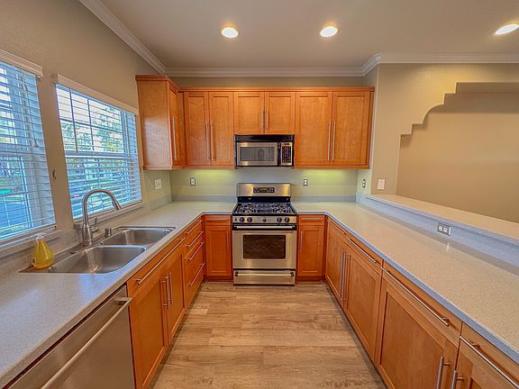 Walk to restaurants, shopping, coffee, parks, pool, spa, elementary school, running trails, concerts in the park and more! This spacious 2 bedroom, 2.5 bath townhome is perfectly situated in the highly walkable master planned community of Ladera Ranch. Attached, direct access 2 car garage. Expansive great room with living, dining room and open kitchen located on the second floor. Primary bedroom includes specious ensuite bath with dual vanity, shower and separate bath and 2 walk in closets. Refrigerator, washer and dryer included. All located in a beautiful master planned community with miles of running and biking trails, 4 clubhouses, Olympic sized swimming pools, numerous parks, pools and splash pads. Tennis, pickleball, basketball and volleyball courts. Exceptional sports parks and youth sports for baseball, soccer, basketball and more. A water park and a skate park. Disc golf course, community gardens, there is something for everyone to enjoy. Cox high speed internet service included with rent. 12 months