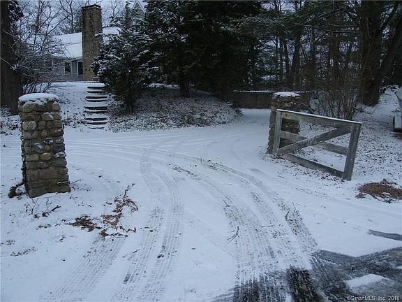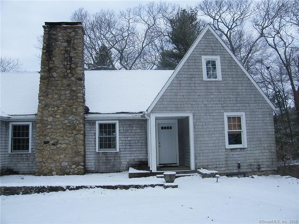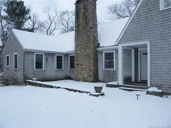 520 feet of frontage on Roger's Lake! This charming cape sits elevated on nearly 2 acres with its own boat dock. Motor or paddle out to "Bramble Island," your own private island with nearly a half acre of land! The house has many wonderful features including a cathedral ceiling, exposed beams, stone fireplace, and a butler's pantry. Two spacious walled stone patios are great places to overlook the private grounds or take in the views! Ready for your updating.