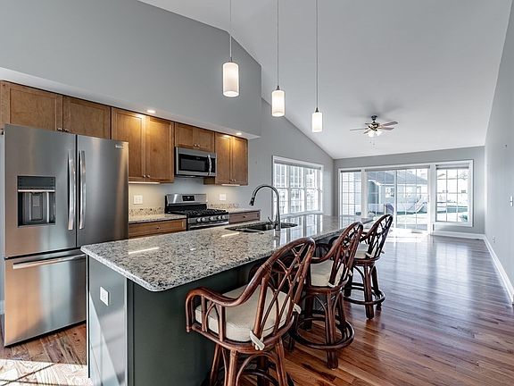 - Features: Vaulted Ceiling(s), Flooring - Hardwood, Pantry, Countertops - Stone/Granite/Solid, Kitchen Island, Breakfast Bar / Nook, Open Floorplan, Recessed Lighting, Stainless Steel Appliances, Gas Stove, Lighting - Pendant