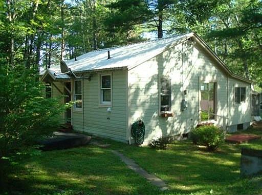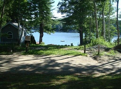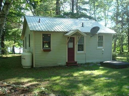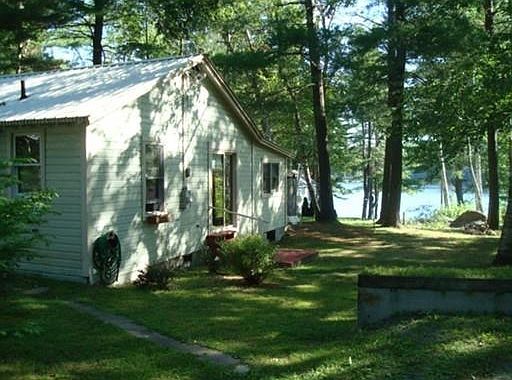 Great spot for recreation, swim, boat, skate, hike. Beautifully sited year round cottage directly across from the association beach. Water views from the cottage and the decks. Open floor plan works well for entertaining. One bedroom has sliding glass doors to a deck. Third bedroom was converted into a laundry/utility room. Could use some cosmetic updating but really a cute charming cottage, with a new roof! White birch studded yard is level and offers great play or gardening space. Very sweet!