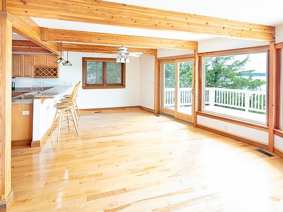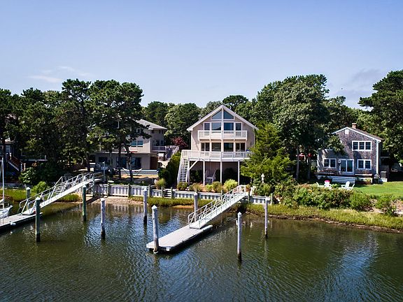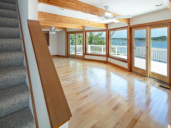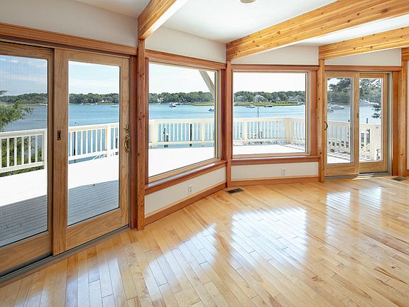 Boaters will love this PRISTINE Monomoscoy Island home on Great River w/ fabulous licensed deep water dock suitable for large boats! One owner custom post & beam 3 bedroom, 3 full bath home w/ SPECTACULAR views! Very open living areas w/ walls of glass & access to your spacious 30 ft long waterside deck makes this home ideal for your relaxed life style. Lightly lived in & used primarily as a 2nd home makes it turn key. The owners have multiple new sliders & waterside windows , all fresh interior paint, carefully maintained exterior & lovingly tended the landscaping. This quality built post & beam home offers handsome wood beans, maple floors & rich wood details. The floor 1st floor consists of a bedroom, laundry room, full bath & open living/ dining/ kitchen . Your 2nd floor master suite has sweeping 180 degree views of the water with your very own private deck . The master suite features a tiled full bathroom with whirlpool tub, skylight & walk-in closet . Everyone need storage & room for the cars so the two car garage under works perfectly! The exterior lower level has a charming patio area to relax on & watch the boats go by. Two zones of gas heat & AC for your comfort .