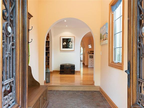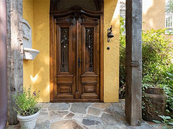 One of the best kept secrets in Silvermine - this amazing home has a secret garden as well. Welcome home to find your peace and solace in this beautiful place. A delight awaits you Enter into the foyer thru the late 17th century reclaimed doors from Verona Italy. Open floor plan on first floor consists of a large sitting room with high ceilings and built ins leading to family room with fireplace which flows into dining room. A sun room opens out to a private patio for outdoor dining. A cooks kitchen complete with double oven and a wood fired Parrilla Argentine style interior grill - 6 burner commercial cook top propane fired. The high ceilings which has loads of natural light is supplied by the windows above. 2 good sized bedrooms both with double closets on the first level together with large bathroom complete with bidet. Guest powder room. All with wide plank beautiful oak flooring. Ascend to the upper level where you will see beautiful inlay wood flooring platform and a door to a large upper deck level. The magnificent master suite has two walk in custom closets. Wood stove and vaulted ceilings makes this a lovely retreat. Master bath with steam shower, 2 shower heads - chromatherapy bath which is in a Spanish cedar platform. An office or atelier specially built with basin, sound system and fully CAT5 and coaxial wired - perfect for home office. Property has many plantings inc lilacs,dogwoods & maple trees. Property is completed deer fenced with double electronic gates