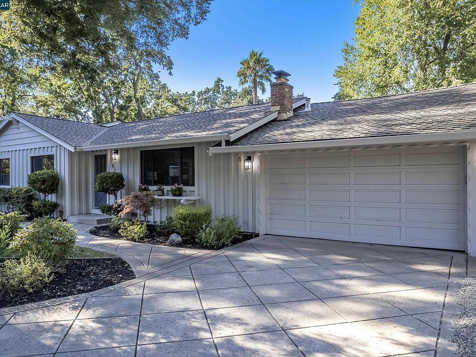 Privacy & charm describe this updated single story property. Located at the end of a quiet court within walking distance to 3 levels of award winning schools. Spacious kitchen w/ granite counters, peninsula, new gas stove, two skylights & rear yard access. Living room offers a coffered ceiling & lovely fireplace, Extra large family room w/ vaulted open beam ceiling, bar complete w/ stainless sinks & fridge opening to a brand new substantial redwood deck with built in planters stepping down to an oversized in ground pool and enormous rear yard w/ mature trees & additional trellis covered eating area. Newly painted inside & out, new luxury vinyl flooring, carpet, hardware, electrical outlets, light fixtures, etc. Other amenities include: updated baths & remodeled hall bath with new vanity, mirror & light fixtures, spacious laundry room, Separate storage/work area in garage, side yard access, new fences & gate, mulch & plants. No need to carpool just simply step across the creek and you are in the fields of the junior and high school, walking and biking trail. Elementary school is a third of a mile down the road. This flat lot is 15,682 sq. ft. & sides to only one neighbor on the right and gorgeous grove of Redwoods, creek & lush landscaping on the left. All this and no HOA!!