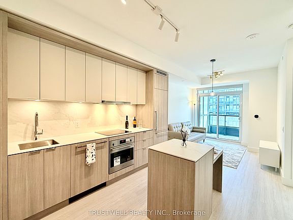 Beautiful 1 Bedroom + Den suite at Bayview at the Village. Functional layout with enclosed den featuring sliding glass doors, perfect as a second bedroom or home office. Bright open concept living area with modern kitchen and full size appliances. Walkout to private balcony for added living space. Spacious bedroom, contemporary bath, and in-suite laundry. Steps to Bayview Village, TTC subway, parks, and major highways.
