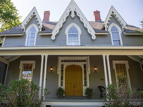 The "Daniel Swinbourne House" is an exquisite, renovated Gothic Revival has 6 bedrooms and 4.5 baths located on a quiet street centrally located near the beaches and the downtown areas of Newport. This well-appointed home has a formal living room and dining room, a comfortable sitting room, a den and a beautiful eat in kitchen with granite counters and stainless appliances. Kitchen is fully equipped for summer entertaining and family get togethers. Second floor has master suite with private bath and walk in closet. Two bedrooms with shared bath and 3rd bedroom with private bath set in the back. Third floor has one bedroom sharing a renovated bath with the 2nd loft style bunk room. All bedrooms are air conditioned. High ceilings throughout with oversize windows and plenty of light. The outside has a wonderful covered porch. Lovely landscaped 1/2 acre lot. Perfect Vacation Getaway in a quiet desirable neighborhood off Bellevue. Walking distance to First Beach, Shops, Restaurants and all that Newport has to offer yet quiet and peaceful. Available for July 2020 for $33,000 with a cap on utility usage The owners would add a portion of August if needed. August 2020 is a possibility also for $33,000.