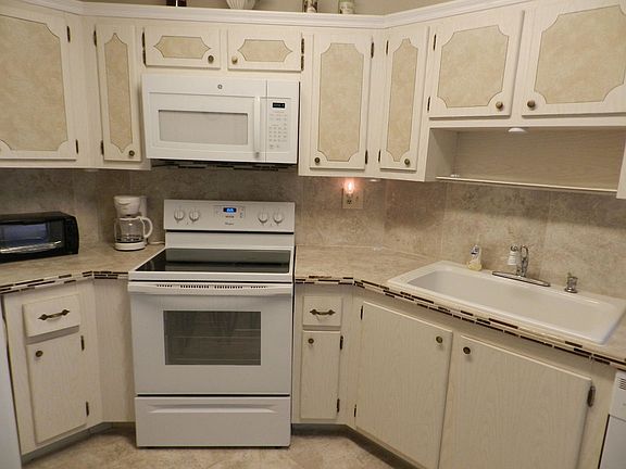This 1 bedroom 1.5 baths on first floor condo in Greenway Village 55+ community has a large private screened patio with entrance close to parking. Remodeled over sized living room & dining room. Beautiful tile floors, 2 door entrance, white cabinets & white appliances. Pass thru from kitchen to patio. Outside storage on patio. Close to Common Park, you can ride your bike or walk.