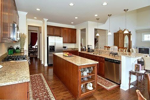Spectacular gourmet kitchen with Cherry cabinetry, stainless steel appliances, granite, gas oven/range overlooking bright vaulted great room with fireplace. Wonderful deck to enjoy large, level, private backyard. Large bedrooms and guest suite. Partially finished lower level with walk-out.