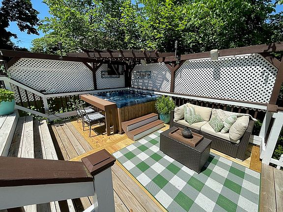 Welcome to 6 Grove Street. Outdoor living at its finest! Beautifully updated and well maintained 4 bedroom home. Main level offers a bright and open floor plan with large updated kitchen complete with granite counters and stainless appliances, living room with gas fireplace and dining area. Main level also includes 1 bedroom and full bathroom, complete with laundry off kitchen. Upstairs features 3 oversized bedrooms with generous closet space. Get ready to enjoy, entertain and relax in the beautiful backyard. Large, level corner lot featuring 2 decks, spa hot tub, and gravel fire pit area. House also has central air, unfinished basement with plenty of room for storage and a large driveway. Potential to add second floor bathroom directly above first floor bathroom. Walking distance to elementary and high school. Showings to be available starting 6/22. Qualified and serious buyers only. Please email all inquiries, including pre-approval to 6grovewanaque@gmail.com
