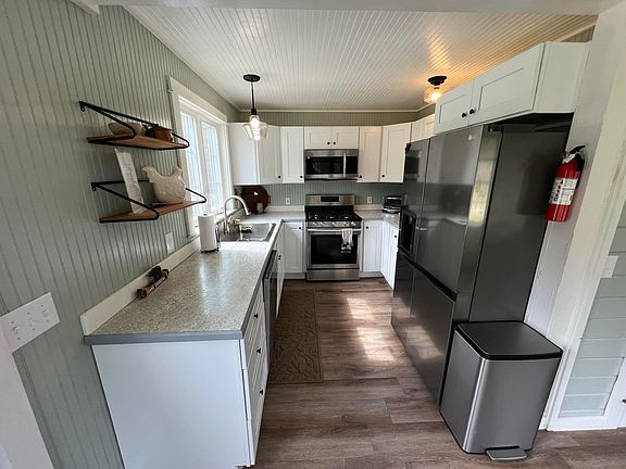 This recently renovated home features 3 B/R. 1.5 BA. Many upgrades include new smart siding, Matthews windows, Propane furnace, flooring, and majority of all components of home. There is deeded access to Alamoosook Lake just 2 minutes away for all of your summer , or winter activities. A Vermont Casting wood stove is sure to keep you comfortable after a leisurely walk, or spending the day on the lake. There is a cottage/ garage on neighboring property that can be purchased to store your toys, or convert to more sleeping area for all the company you are sure to have.