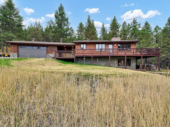 The home boasts TuffCore Luxury vinyl flooring and premium carpeting, while the bathrooms have been transformed with travertine flooring, FloForm quarts countertops, custom tile, and river rock showers, adding a touch of natural elegance. The basement bathroom has in floor heat for those chilly MT mornings. Solid pine doors, custom blackout blinds, and a wood fireplace insert provide warmth and comfort throughout. Home is also set up for a generator to be added as desired. Step outside to the expansive deck, where you'll be captivated by the breathtaking views of the surrounding landscape. Whether you're entertaining or simply enjoying the tranquility, this outdoor space offers the perfect vantage point to soak in Montana's natural beauty. The home's exterior features McGregor lake real stone (also on the fireplace on the inside), complementing the rustic, yet refined interior design.