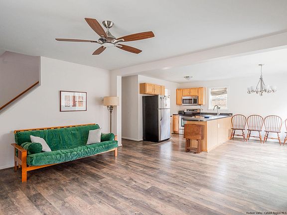 Cute as a button cape! This light and airy home features a first floor primary suite, a gas fireplace for cozy winter evenings, an open kitchen area and two additional spacious bedrooms. The large walkout basement provides plenty of storage room or possible additional living space. An energy efficient Navien tankless boiler provides the heat and hot water. Relax and enjoy the backyard barbecue and firepit. Freshly painted and ready to move in. Conveniently located near the villages of Red Hook and Rhinebeck as well as the Taconic Parkway and many other local amenities.
