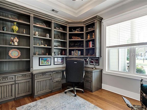 Model perfect! This custom Southern Coastal Home inspires daily lakefront enjoyment. A stunning Lowcountry design w/beautiful hardwood floors throughout, fine trim from base to crown, private office stout w/custom built cabinetry & a great room boasting soaring ceilings, wall to wall built-ins & gas fireplace. Gourmet kitchen offers pendant lighting, ample counter seating & SS appliances. Enjoy private lake & preserve views from your tiered screened lanai & covered porch; paver bulkhead & kayak slip included. All new lighting, interior paint, dog run, oversized garage & HUGE walk-in/spray foam attic. Centrally located for max convenience!