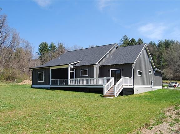Location, Location! This quality built new construction home sits on .7 acres and on minutes for grocery store, dining, ACA and approx. 15 minutes to Asheville and Black Mountain! House is on level lot with fantastic large back yard from your open air porch and private screened back porch with ceiling fan. Enjoy many upgrades such as vaulted ceilings, stone fireplace, Pelle windows and doors, hardwood floors, radiant heating tile floor in master bath, walk in closet with built in closet shelving in all rooms. Conceiled crawlspace, stainless appliances with granite countertops, all cabinetry with soft close doors/drawers, 65" flatscreen tv mounted and flagstone walkway off front porch with on demand hot water heater. Many more upgrades in this master built construction home in super convenient location.