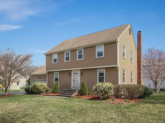 Immaculate, traditional 4 Bedroom, center turned-staircase, Colonial style home located on quiet cul-de-sac. Front foyer entry surrounded by formal dining room on one side and living room on the other. The foyer leads back to the kitchen and family room with wood burning fireplace. The half bath/laundry and closet are off the kitchen. Side front door entrance access to the attached 2 car garage. Kitchen is adjacent to the family room, so you can enjoy the wood burning fireplace, with exposed brick wall. Sliding glass doors lead from the family room to a deck in the back of the home. Durable, maple hardwood flooring in the dining, living and family rooms creates a clean even natural look. Four bedrooms on the second floor including a spacious master bedroom with a private bathroom and walk-in closet. Wide stairwell leads to full, unfinished basement. Level driveway is close to shed to store your lawn equipment and toys. Gas heat, central air conditioning and Harvey vinyl replacement windows (with lifetime warranty). Conveniently located to schools, shopping, health club, medical care and downtown Hartford. Samuel B. Webb Elementary School district. Pride of ownership.
