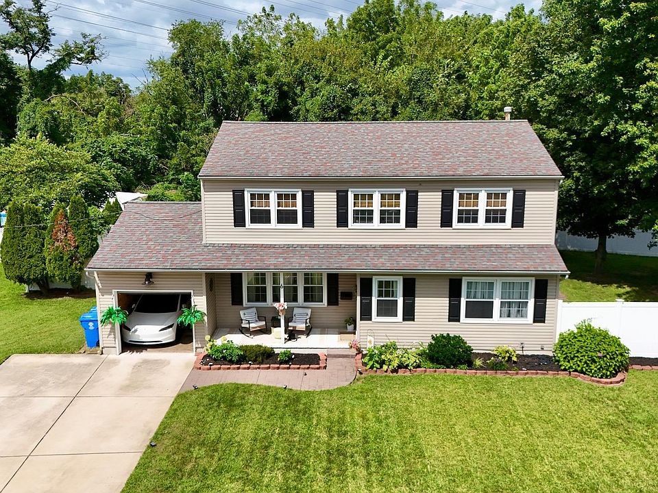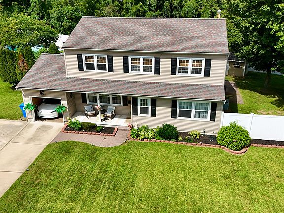 Welcome to this spacious and well-kept 4-bedroom, 2.5-bath home situated on a private corner lot at the end of a quiet dead-end street. Thoughtfully updated in 2024, the property is move-in ready, full of desirable features inside and out, and even comes with much of the furniture included. Recent improvements include all new second-floor flooring (excluding bathrooms), a new Whirlpool dishwasher, and a new Whirlpool washer and dryer. Inside, you’ll find an eat-in kitchen with a breakfast and coffee bar, an upgraded primary suite with a refreshed bedroom and bathroom, and a finished basement that includes a sectional, storage ottoman, card table, and drink holders. The attached garage is equipped with a remote opener for added convenience. The outdoor spaces are just as inviting, with a large backyard complete with a play set for family fun, a garden and pond for a serene setting, and a retractable awning covering the patio area. New electrical service has been added to both the patio and shed, and a RainBird sprinkler system keeps the front yard well maintained. Other notable features include the township school bus stop located right out front. This sale also includes the outdoor playset, grill, firepit, and interior furniture—everything minus mattresses, bedframes, a desk/chair set, and china cabinets. This well-maintained property combines modern updates, family-friendly living, and generous outdoor spaces—all on a private corner lot. With so much to offer, it’s priced to sell. Don’t miss your opportunity to make 6 Harvest Lane your next home!