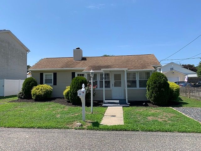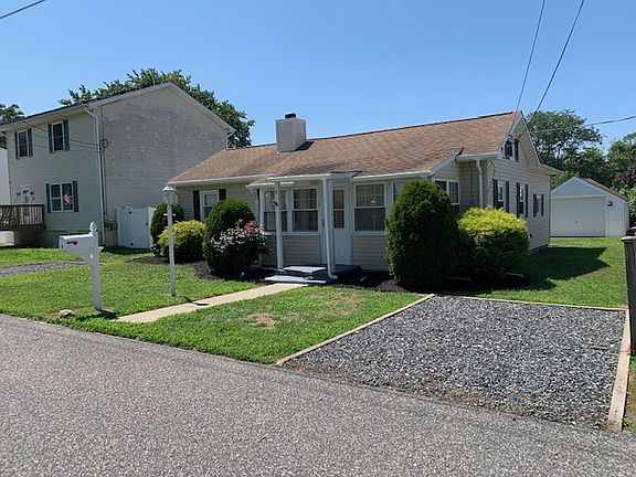 Adorable, well maintained 3 bedroom/2 bathroom rancher located on a quiet, dead end street, and only approximately a quarter mile to the bay. This home has been recently updated including new flooring and paint throughout, granite counter tops, tile back splash and tiled bathrooms. There is a separate laundry room off of the kitchen, along with a fully enclosed front porch. For additional space, you'll find a large den that connects the kitchen and living room areas. A partial basement is accessible from a floor hatch in the master bedroom hall. There are two stone driveways located on either side of the house and also, a detached garage that has been newly sided with CertainTeed Restoration Board. The back deck, partially wrapping around to the side of the house, has a motorized retractable awning that covers the whole back side when opened. All exterior paintable surfaces, including the deck and rails, have been recently painted. Flood insurance is not required.