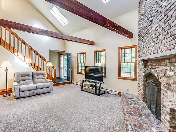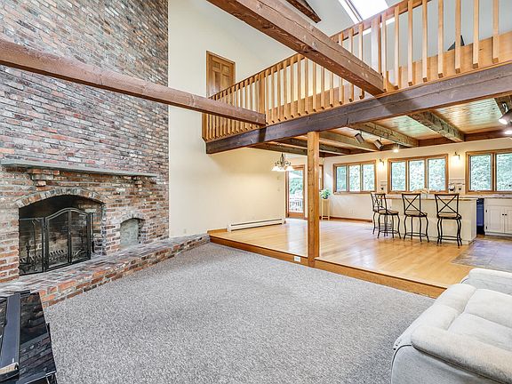 If you have been looking for privacy this is it. Nestled in South Sandwich on Heather Hill sits this contemporary Cape on almost an acre. Spend your afternoons on the front porch overlooking the mature landscape. As you enter you will love the open concept living. The expansive kitchen has a dining area, center island and plenty of counter space. Enjoy entertaining in the living room with the oversized fireplace. The main level primary suite sits on one side on the home. The two guest bedrooms and full bathroom complete the main floor. Upstairs offers a bonus loft and another living room with a bath. Updates include newer gas heating system and roof.