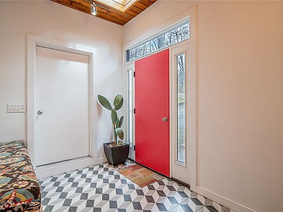 Stunning Deck House with soaring ceilings, walls of glass, and warm wood finishes. Designed to blend with nature, this architectural gem offers timeless style and serene living. Experience modern living in this five-bedroom, three-bath contemporary home in the sought-after Cayuga Heights Elementary district. The main level impresses with soaring ceilings, parquet floors, and walls of windows framing winter lake views. The chefs' kitchen, renovated in 2018, features quartz countertops, ample cabinetry, and an oversized island, flowing into an inviting living space with a wood-burning fireplace. The primary suite boasts a spa-like bath with an open shower and soaking tub, while two additional bedrooms share a stylish full bath. The lower level offers a cozy family room with another fireplace, a walk-in large sauna, a spacious laundry/utility room, and two versatile bedrooms or office/studio space. A 2018-added two-car garage provides extra convenience. If you love to entertain, especially outdoors, then this is the property for you! Invite your friends and family and host a party on your stone patio complete with a pizza oven and rotisserie BBQ. Set on a lush, private one-acre lot with many perennial gardens that bloom throughout the 3 seasons. There are woods, a serene seasonal stream and winter lake views. This home blends tranquility with easy access to town. Peaceful and quite yet close to it all. Come see this great house or call your agent for a private showing. Offer review 4/10 at 9am.