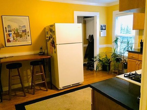 Beautiful 1st floor apartment in three family home. Bright and Sunny. 2 bedrooms, living room, dining room, kitchen, hardwood floors throughout. Great location on a quiet street along the Alewife Brook Greenway on Arlington/Cambridge line. Less than a 10 minute walk to Alewife T Station. 2 off-street parking spots. Convenient to Rt. 2. Kitchen includes disposal, refrigerator/freezer, granite countertops. Washer/dryer included with unit. Storage available in basement. Great neighborhood! Owner pays for water. Renter responsible for utilities. No pets. Last month's rent due at signing. No smoking allowed.
