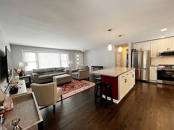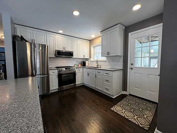 Looking for an updated ranch in move in condition? Look no further, as you enter, you'll be taken back by the gleaming hardwood flooring, open floor plan and beautiful color scheme. Fully renovated island kitchen with custom cabinets, corian counters and all stainless appliances. Updated full bathroom has custom tile and vanity. All 3 bedrooms have the hardwood floors and two with ceiling fans. Bedroom 3 is currently being used as an office. Large 3-season room of the back with beautiful views of your giant backyard. Full basement is finished, just need to choose your flooring. Property is right down the street from the community pool and school. Close to all other area amenities.