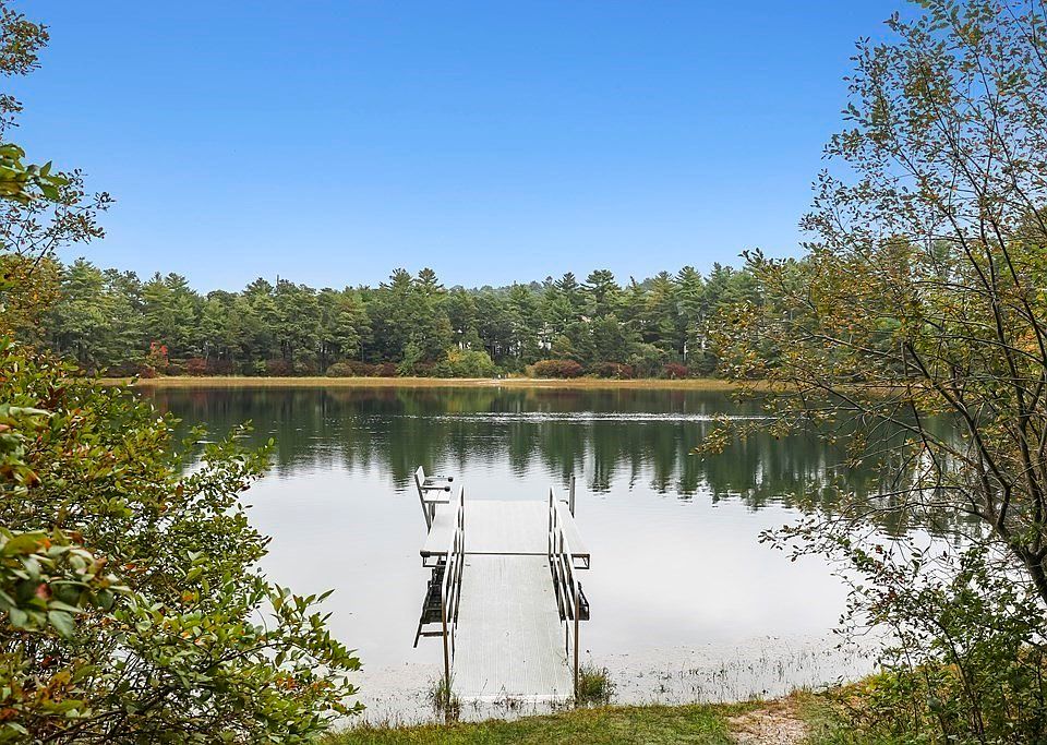 Welcome to Rebecca's Landing in Pinehills. Privacy and elegance awaits you in this end unit overlooking Clam Pudding pond. This light and bright T model home has an open floor plan for easy living featuring beautiful Bamboo floors. Main suite with cathedral ceiling, walk in closet and private bath with hot tub. Gourmet kitchen with stainless appliances and granite counter tops opens to a cozy family room with a gas fireplace with granite surround, leading to the private courtyard. Combination dining room/living room with wall of windows with access to a large deck with pond views. Upstairs you will find a spacious loft perfect for an office with a second bedroom and a full bath. Recent improvements include a new roof 2023, new water heater 2023, new fridge 2023, new front load washer 2023, new gas stove 2022. Surround sound system throughout. Walking distance to Clam Pudding Pond and steps to 2 pools. Bring your kayaks, and enjoy the amenities The Pinehills has to offer!