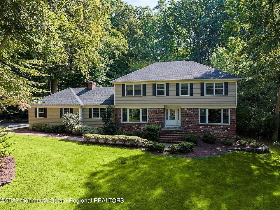 Nestled on a tranquil street in the heart of prestigious Holmdel, this highly coveted development is the ideal place to call home! Welcome to 6 Hidden Hollow Terrace, a four-bedroom, three-bathroom colonial that exudes both luxury and sophistication. Discover all that this beautiful residence has to offer from the moment you enter its doors. Featuring the many comforts of a well-designed home, formal living room, dining room, hardwood floors throughout, decorative moldings and a modern neutral palette, this home blends functionality and elegance effortlessly. Boasting a plethora of oversized windows that provide an abundance of natural light, flowing seamlessly through each space with a thoughtful, open concept. Enjoy a stainless-steel chef's kitchen with a 9' granite island, extensive cabinetry, six burner gas Viking stove, Miele dishwasher, double wall oven, wine fridge and microwave conveniently located in the island. Relax on a comfortable and stylish window seat while overlooking gorgeous grounds with a secluded, full acre of wooded privacy. Opening to a lovely family room with cathedral ceilings that highlight stunning wood beams, contemporary metal chandelier and a floor to ceiling exposed brick gas fireplace, this incredible gathering spot is perfect for memorable times with family and friends. French doors lead to an enchanting, screened porch with vaulted, beamed ceilings providing views to a backyard oasis. Entertaining has never been more enjoyable! Step outside to the ultimate in outdoor living with a well-maintained heated, inground pool and mature landscaping for afternoon barbeques and warm summer nights. Completing the main level of this special home is a powder room, laundry/ mud room and two-car garage. The second level features wood floors that lead to a spacious primary bedroom suite and owner's retreat. The bath is luxurious with a spa-like glass enclosed shower, built-in seat, Grohe shower system and spacious walk-in custom closet. Three additional guest bedrooms are generously appointed with a marble family bath. For leisure and recreation, an expansive, fully finished lower level is the perfect space for a game room, fitness area or hosting movie night! Storage is plentiful and additional home features include a newer roof, water heater, new 2023 pool liner and filter/pump. This home truly checks all the boxes! Located within a renowned, highly rated school district, the educational opportunity is top-notch! Holmdel is a commuter's delight with proximity to NYC, GSP and transportation. The nearby Bell Works complex is a one-of-a-kind destination for shopping, dining, fitness, business and culture. Holmdel township offers a wealth of recreational activities, outstanding parks, PNC Arts Center and just a short drive to the famed beaches of the Jersey Shore, making this community one of the best places to live in Monmouth County. Schedule a private tour today! Showings to begin 11/18.