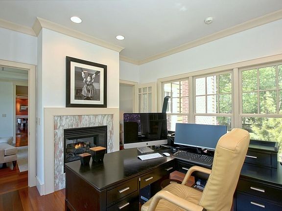 An exceptional custom home thoughtfully designed with a classic shingle and stone exterior paired with a modern aesthetic on the interior. This masterfully crafted home sets the first impression of this premier cul de sac neighborhood of eight enviable homes by a renowned local builder. The main level showcases a dramatic open foyer, elegant formal living room with marble fireplace, private library with fireplace and custom appointments, gracious dining room with exquisite lighting, state-of-the-art gourmet kitchen with expansive island and dining area open to the adjoining spacious family room highlighted by coffered ceiling and stone fireplace. The second level features a serene master suite with a fireplace, sitting room, and luxury bath. Three additional bedrooms, two baths, and laundry room complete this level. Enjoy the home theater in the lower level along with an exercise room, full bath and playroom. A dynamic home on an impressive level professionally landscaped setting!
