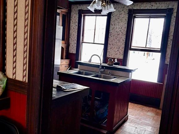 This charming 1895 colonial home is a diamond in the rough, exuding timeless character and potential. With its classic architectural features—such as a gabled roof, ornate trim, and original wood floors—it offers a glimpse into the past. The spacious layout includes multiple living areas and generously sized bedrooms, perfect for modern living. A separate carriage house adds to the property's charm, providing opportunities for a workshop, studio, or additional living space. Surrounded by lush landscaping, this home awaits a visionary owner to restore its former glory and create a stunning residence.