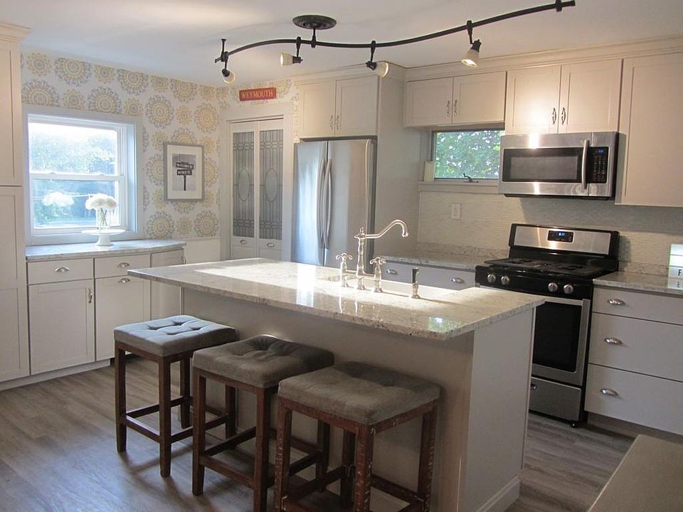 BEAUTIFUL updated 3-4 bedroom Antique Colonial located up on a hill in the heart of down town E. Weymouth on the Hingham line. The character & charm of c.1868 were nicely preserved. As you enter this lovely home, you'll be pleasantly surprised by the openness in the floor plan. In 2016, owners designed a custom cabinetry kitchen with granite counter-tops, stainless steel appliances, tiled back-splash & gas cooking stove. Refrigerator included. Updated 2nd floor bath with skylight. In 2019, owners installed a new roof, new windows (most), first floor laundry, refinished the ceilings & retaining wall. Home also displays: beautiful hardwood floors, walk out basement, private fenced in yard, covered porch, 2 tier deck and 2 separate driveways. Only 1 minute to Commuter Rail, Dunkin Donuts, CVS, liquor store, parks, schools & restaurants. Property is also business zoned (B-2) which allows for many commercial / business opportunities.