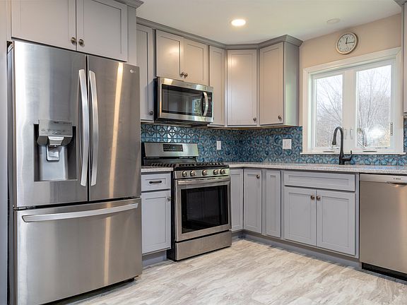 Mark your calendar for Open House weekend October 22-23 from 10-12 to come and see this adorable 3 bed + bonus room, 2 bath cape with direct entry 2 car garage. Step inside to the newly renovated kitchen featuring stainless steel appliances, soft close cabinetry and quartz countertops. Gorgeous wide plank hardwood floors cover the first floor dining room, hallway, living room and first floor bedroom. A full bathroom completes the first floor. The basement entry is appropriately located in the hallway and you will be amazed at the partially finished space below featuring lots of natural sunlight, a wood stove for an alternative heat source and a storage/laundry area. The walkout makes it easy to entertain between the large rec room and the outside deck area with a propane firepit, fruit trees and Concord grape vines. The 2nd story of the home features another full bath, a front to back primary, the 3rd bedroom plus an office/flex space to use for your liking. Wide plank floors continue upstairs. With newer windows and multiple heat options you are sure to keep warm this winter. Stop by the open house this weekend to see if this is the home for you.