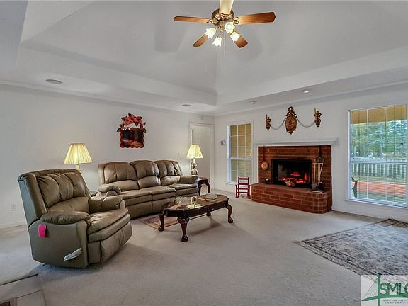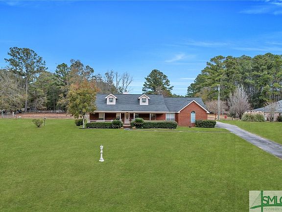 Welcome to this charming brick 3 bedroom 2 bath home located on 2.58 acres with beautiful pond and it's own Heron that visits on a regular basis. Enjoy the charm of the front porch with swing and enter into a large living room wtih tray ceiing, recessed lighting, surround sound, and wood burning fireplace. Enjoy view of pond from dining area that opens to kitchen with breakfast bar and flex area. The split floor plan features an owner's suite with master bath with whirlpool tub and separate shower. Side entry to oversized garage with 768 sq feet with pull down stairs to fully floored attic above garage. Enjoy the natural beauty of the cleared back yard with pond for fishing. Also includes a large storage building with triple attached carport for lawn mowers or ATV's. Easy commute to Savannah, Pooler, Statesboro and the new Hyundai Plant. Don't miss the opporunity to make this your own haven.