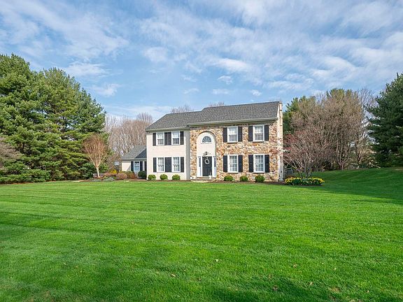 Welcome to this impeccably, well maintained beautiful stone front Colonial in the highly sought after neighborhood of West Riding. Situated on a flat and large one acre lot. Upon entering the front door you immediately see the attention to detail with gleaming oak hardwoods throughout the first floor. A large living room and formal dining room take you back to the completely renovated kitchen with white granite counter tops, white cabinetry and stainless appliances. The open floor plan has an inviting family room with a gas fireplace and beautiful built in cabinetry, a lovely area for entertaining. The bright sunroom/Florida Room is the perfect spot to enjoy morning coffee with views of the private backyard. A glass door takes you out to a perfect deck for summer barbecues. Upstairs brings you to a generous primary suite with a renovated bath, double vanity with granite top. The updated hall bath is oversized and also offers a double vanity and is adjacent to the upstairs laundry closet. The three remaining bedrooms are generous and move in ready. The lower level is partially finished with a “theater room” and still with an abundance of unfinished space perfect for storage. This home has been amazingly well maintained and is in perfect condition to move right in!