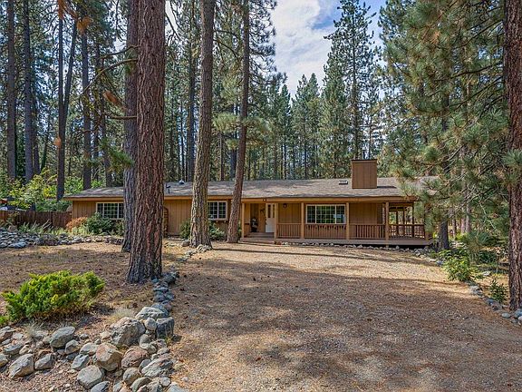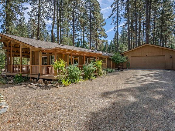 HOKAN TRAIL IS WAITING FOR YOU! This residence is positioned on a large corner Lot with lots of space, this custom mountain property includes: All one level with the GREAT ROOM's tall beamed ceilings, skylights, lots of light, open and airy to the Dining Room and Kitchen - Step onto the spacious covered deck that runs around all three sides! The KITCHEN has Quartz counters, all stainless appliances and just the right size - laundry and storage space too! As you wander down the Hallway you find two large bedrooms a Hall Bath and then enter into the Private Master Suite - can be a lock out for complete privacy with ensuite Bath, wood ceilings and access to outside. Detached two car garage, fenced rear yard with easy maintenance. The home has an AIR MOVER kerosene powered, under-house furnace, and kerosene stove on a native rocked hearth. Freshly stained decking, new flooring in parts of the home. Many of the furnishings will remain - Located within walking distance of downtown Graeagle yet private and quiet among the tall pines. Come take a look and see why Graeagle is the new Tahoe or Truckee destination!