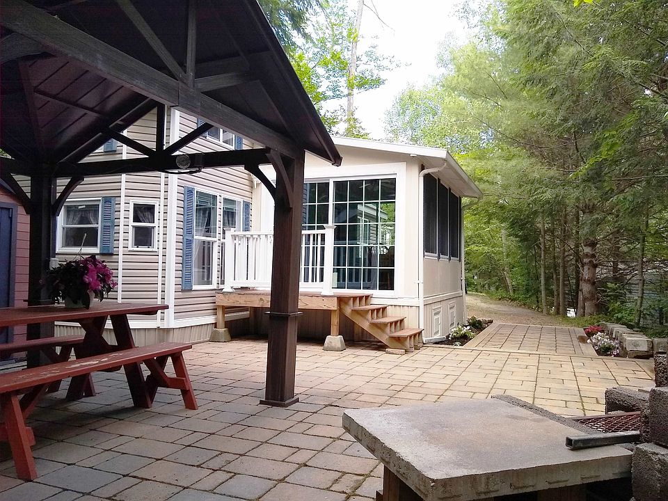 Squam Lake Access Available!......Summer is here and your vacation home is ready for you to enjoy. Your large very private outdoor space with newer patio and higher end gazebo is great for entertaining. Enter inside to your bright and sunny porch with large windows and an 8' sliding door that is facing your patio. After a day of fun, your guests will want to stay the night; there is room for all with a primary bedroom, a loft and a sleep sofa in the living room. Open floor plan kitchen/living room with full size appliances in the kitchen. Just a short walk from your condo is the heated indoor pool with hot tub that is open year round. Other amenities at the resort include a heated outdoor pool, horseshoes, playground, rec hall with workout room, laundry, ping pong, foosball, pool, games and many planned activities throughout the summer months. Whether you like hiking and boating during the summer or skiing and snowmobiling during the winter, your vacation condo is close to all area attractions.......Build memories and friendships that will last a lifetime in your Happy Place!