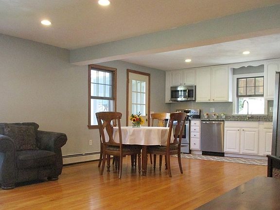 Picture Perfect Curb Appeal describes this Adorable 4 Bedroom, 2 Full Bath Cape framed by white picket fences - a Perfect Starter home on a quiet neighborhood street near highway access for easy commuting. True Open Concept Main Level with Living Rm open to Updated Kitchen and Dining Area - all with Hardwood Floors. One Bedroom down and 3 Bedrooms up - take your pick of having your Master Upstairs or Down! First Floor Dedicated Office Space and Full Bathrooms on each level. Three Season Enclosed Screened Porch in the rear - great space to enjoy meals with friends/family! And the spacious Backyard has lots of space to enjoy with outdoor Fireplace and Shed! Updates include Newer Heating System and Hot Water Tank - both approx. 2018. Newer appliances. Don't Miss This One! Showings Start at Open House Thursday Eve 8/13 5:30- 7 pm. Will have second Open House Sunday 8/16 111:30-1:30. Offers due Monday 8/17 by noon.