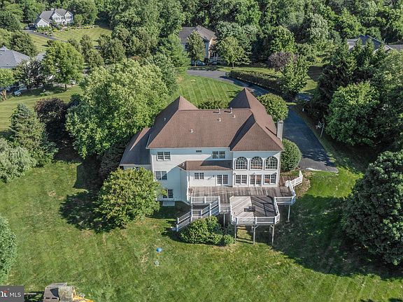 This spacious 5 bedroom 4.5 bath house was built on a fabulous 1.56 acre lot overlooking 10 acres of Conservancy. The dramatic two story foyer welcomes you in to this awesome and open home. The first floor offers a large office with coffered ceilings and custom built ins and a formal living room to the right of the sweep front staircase. The formal dining room has wainscoting and picture frame molding along with oversized crown moldings. There is a large sunroom that could be an art studio, first floor gym or second office. The eat in kitchen kitchen features a 6 burner Viking Range and new oven Microwave combo and has a nice island with wine captain and granite countertops. The light filled, two story family room has a back staircase and multiple french doors leading to the top of the line IPE 1300 sq. ft. hardwood deck. The owners suite has a large sitting room, trey ceilings and two walk ins. The 2nd bedroom is en suite and the third and four share a Jack and Jill bath. The massive walk out, lower level has a full wet bar, built in flat screen, hardwood floors and a full bath with steam shower next to the 5th bedroom and is loaded with recessed lights. Call for a private showing.