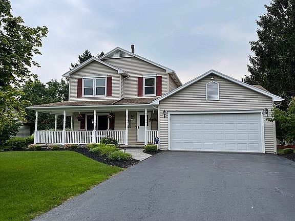 Must see! 6 Hunting Spring is a 3 bedroom, 2 ½ bath Colonial Home in a beautiful and desirable neighborhood. This home is 1800 square feet with an open concept floor plan. Gorgeous kitchen with granite counters and hardwood floors throughout the entire first floor. Kitchen flows into a spacious family room. Sliding glass doors off the kitchen open to a large 600+ sq. ft. deck, featuring a sunken 8 person hot tub, 33x18' oval pool, mounted speakers and more. Outdoor setting also features an 800 sq. ft. slate patio with a waterfall pond. Equipped with an automatic watering system for deck and wrap around front porch planters. Formal living room and office space on first floor is great for working at home. This home has a fully finished basement with a gas fireplace. The basement space features a Great/Playroom, separate Laundry/Home office or craft area and a secured 100 square foot Home Office. This home features 3 three large bedrooms on the second floor. The Master bedroom suite includes a walk-in closet, master bath with a double shower and gas fireplace. Access to an attic above the garage through a pull down stairs. This home is a rare find in the Chestnut Development and will not be on the market long! Can close in quickly. Buyers agents welcome. Don't miss out. To setup a showing, please call Kevin at 585-594-0660 or email at selling6hunting@gmail.com