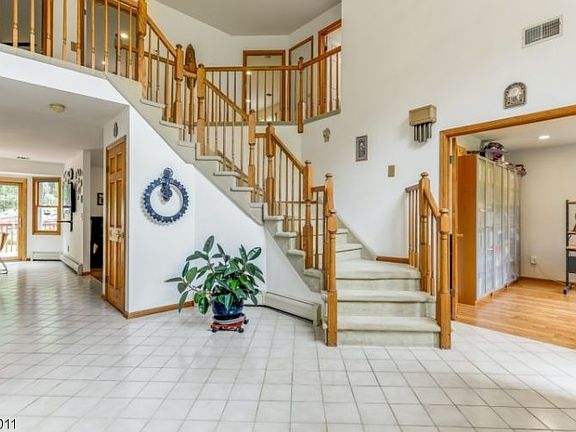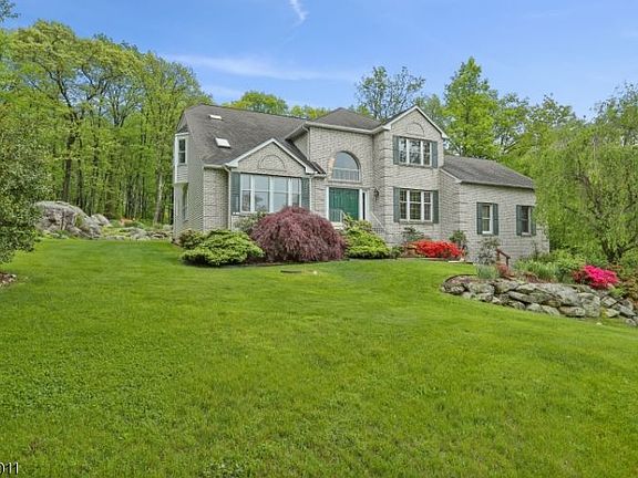 Huge Price Reduction !! Show and Sell !! Brick Front Colonial - 1993 Built, Bright and Sunny w High Ceilings and Skylights ! 3599 Sq Ft, 2-Story Foyer and High Ceilings in the Living Room, and open to the Formal Dining Room. Eat-in-Kitchen with a Slider to the gorgeous Backyard w a New Deck Floor, and an opportunity for a rock garden, limitless possibilities. The backyard is huge and can accomodate a pool ! Fabulous Floor Plan for Casual or Formal Entertaining ! 2 Offices possible on the First Floor ! Large Rec Room off Family Room ! Spacious Family Room open to the Kitchen with Woodburning Fireplace, First floor Laundry Rm and so much more ! Outstanding features include a 1st floor bedroom off the Rec Room with High Ceilings and possibly a Mother-in-Law Suite ! The 2nd Floor has a Large Master Bedroom w a huge Master Bath with a Shower Stall, Tub and a double Vanity. A walk-in-Closet is included in the Master Bedroom ! 3 Additional Bedrooms and a Full Hall Bath make it a spacious 2nd Floor. The Basement is partially finished w heat, some finished sheetrock walls, lighting and outside entrance from the garage. There is a workshop in the basement too ! Rock walls, Professionally Landscaped, Home has Winter Views, Great Location, Award Winning Schools make this a great place to live !! A Must See !! 4 Bedroom Septic. Septic System was inspected and meets current NJ requirements.
