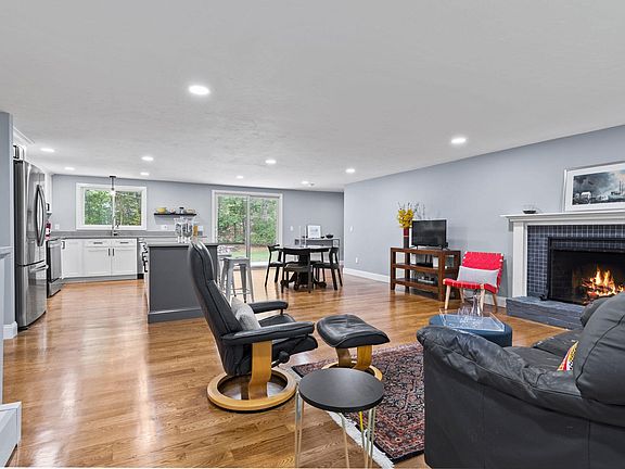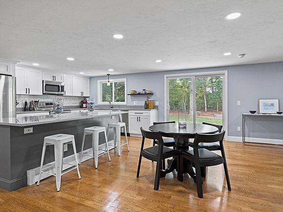 Situated on a level lot on a peaceful cul de sac in the Holly Ridge Community and short distance to the Ridge Club, this tastefully updated 3/2 ranch exemplifies sophisticated yet casual Cape Cod charm. Spacious and bright, the new kitchen provides generous space for gathering and entertaining with a large center island and is open to both the living and dining spaces. The stylish design with new stainless appliances, white shaker cabinetry and quartz countertops in subtle tones will delight the home chef. With refinished oak hardwood flooring throughout the living spaces and wood burning fireplace opening to the large rear deck, this home's open layout is sure to please the most discerning buyer. The ample primary bedroom with new plush carpeting with ensuite modern bath, 2 guest bedrooms, additional full bath, and newly renovated mud room/laundry complete the main level. Need more living space? A full unfinished lower level adds multiple possibilities. The 2 car garage provides additional storage space and direct access to the laundry/mudroom. Improvements include roof, windows, refinished hardwood flooring, carpet, hot water heater, landscaping, front steps, slider, kitchen, composite deck and painted throughout. A walking path in the rear of the property leads to the golf course and pickleball, beach & shopping minutes away.